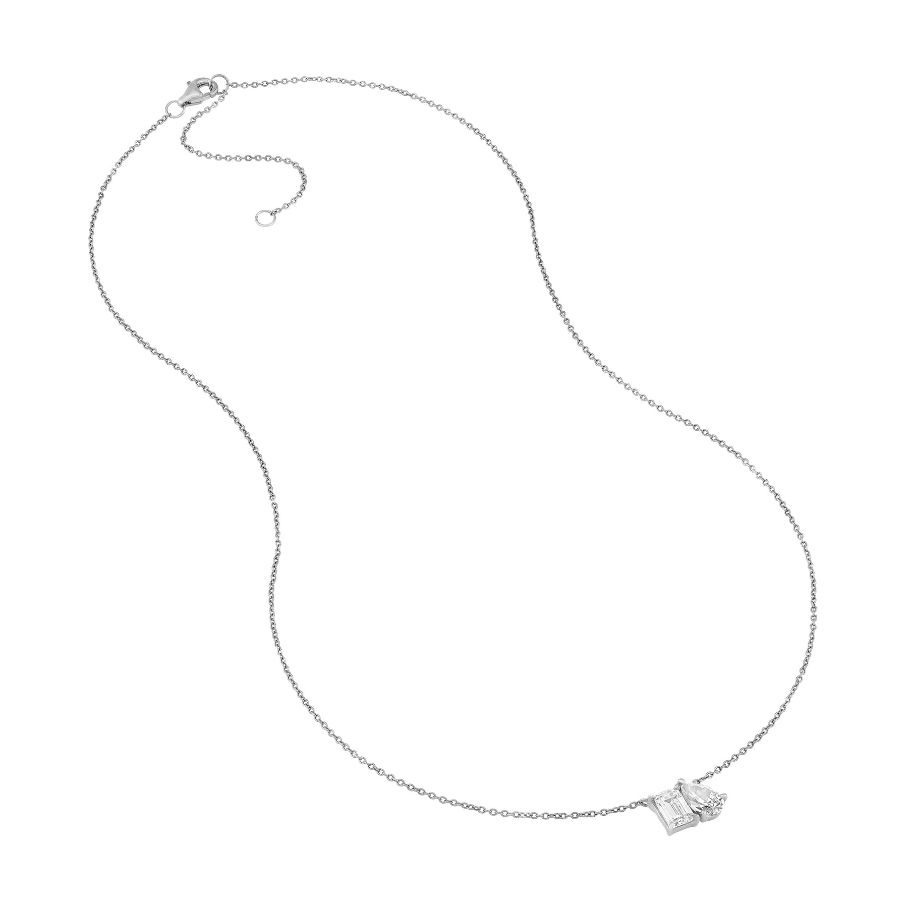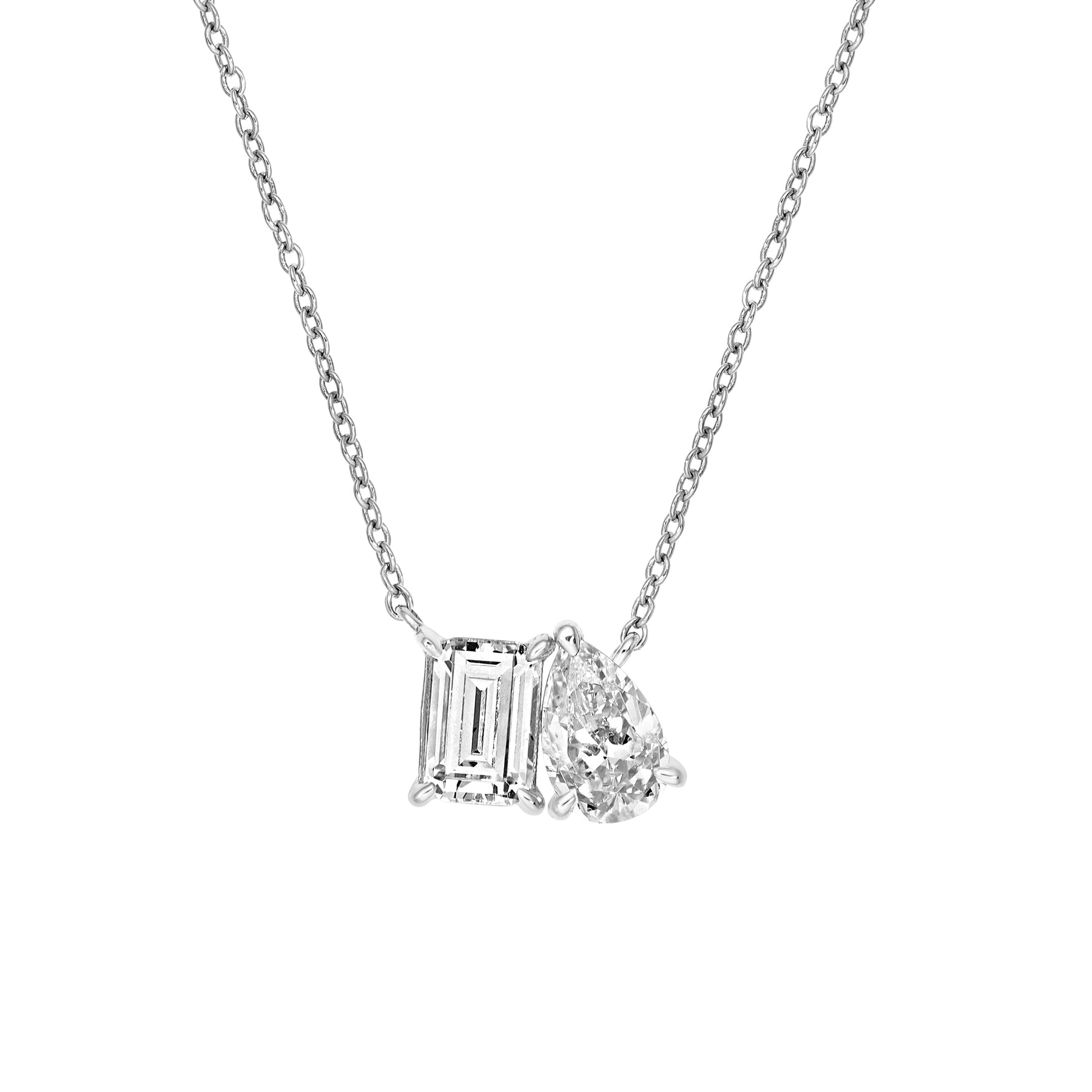 1-1/4tcw Toi et Moi Emerald & Pear Diamond Necklace