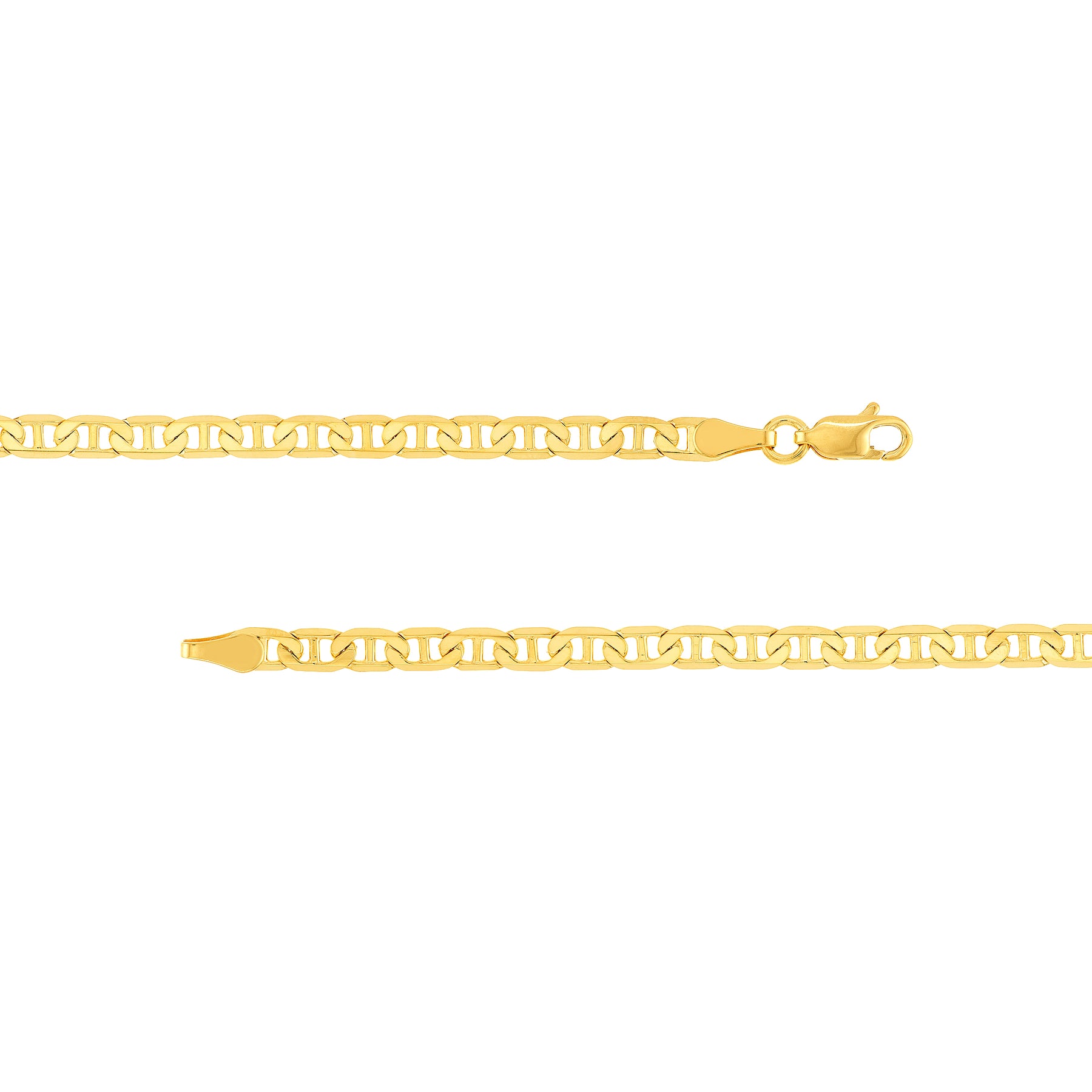 Display a one-of-a-kind look with this Mariner Chain. The unique shape is sure to catch attention. This chain measures 3.7mm and is fastened by a lobster lock.