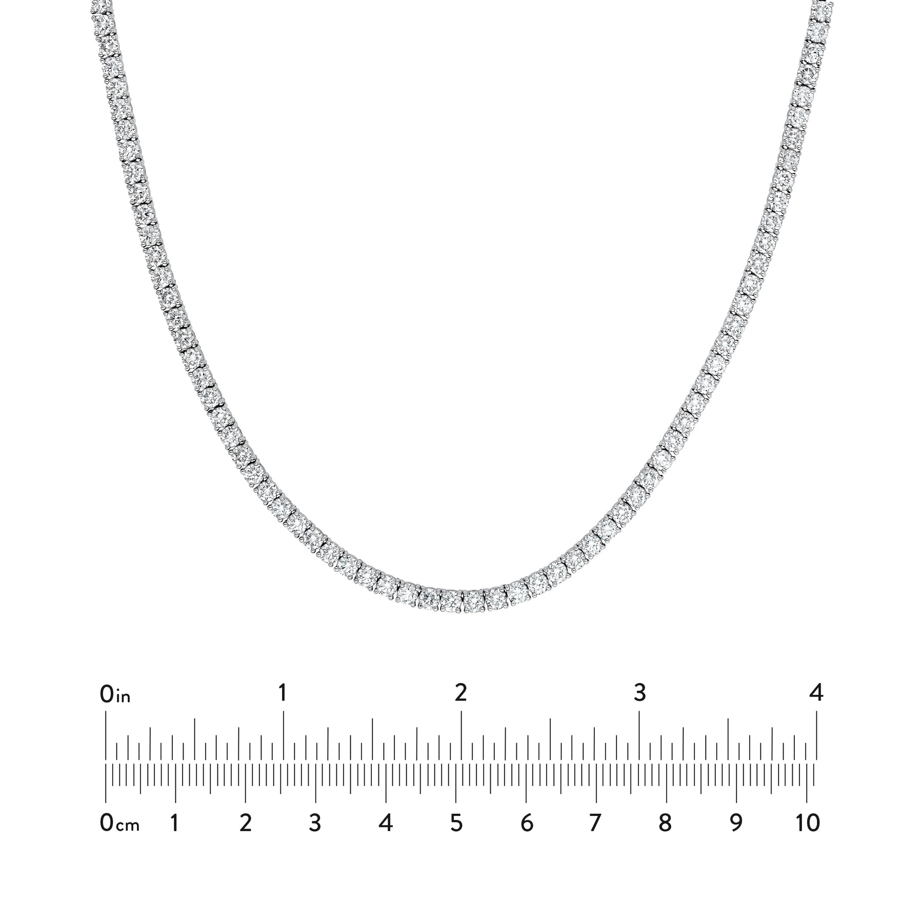 Experience timeless elegance with our straight Tennis Necklace. Set with brilliant 7tcw diamonds, this stunning piece offers effortless sophistication. This necklace is crafted in 14K white gold.