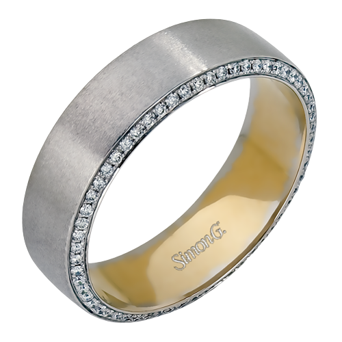 The classic design of this two-tone band features a hint of modernism with a yellow gold interior and white gold exterior accentuated by .50 ctw round cut white diamonds.