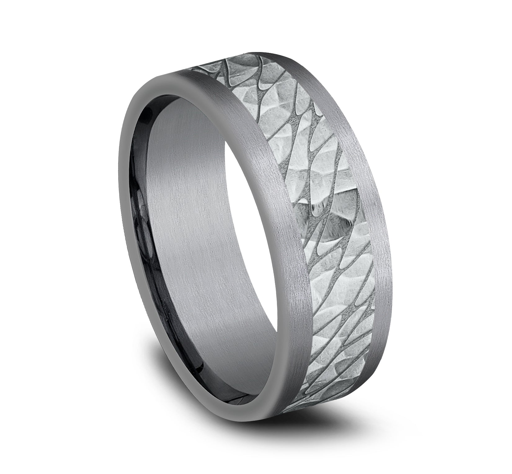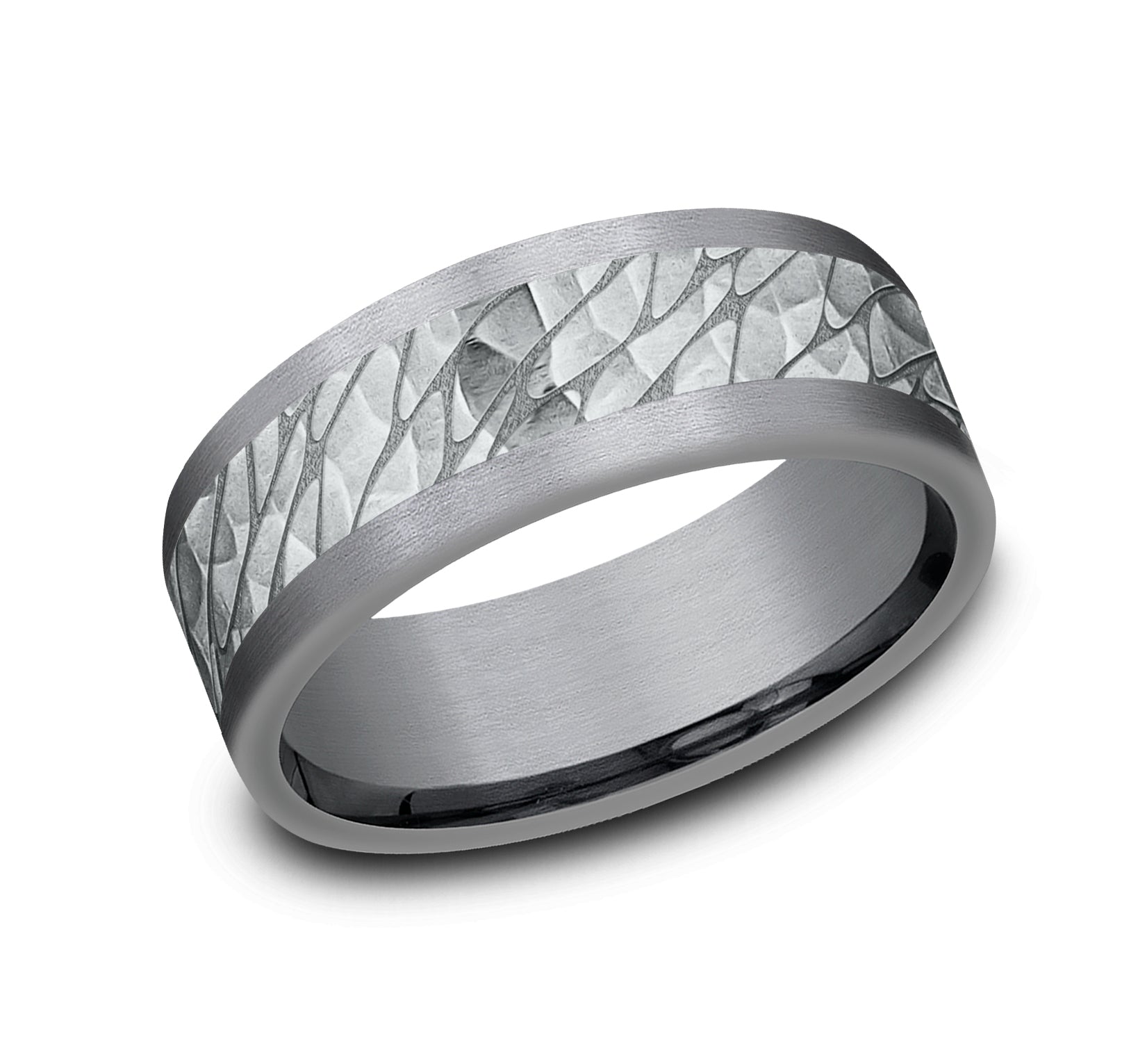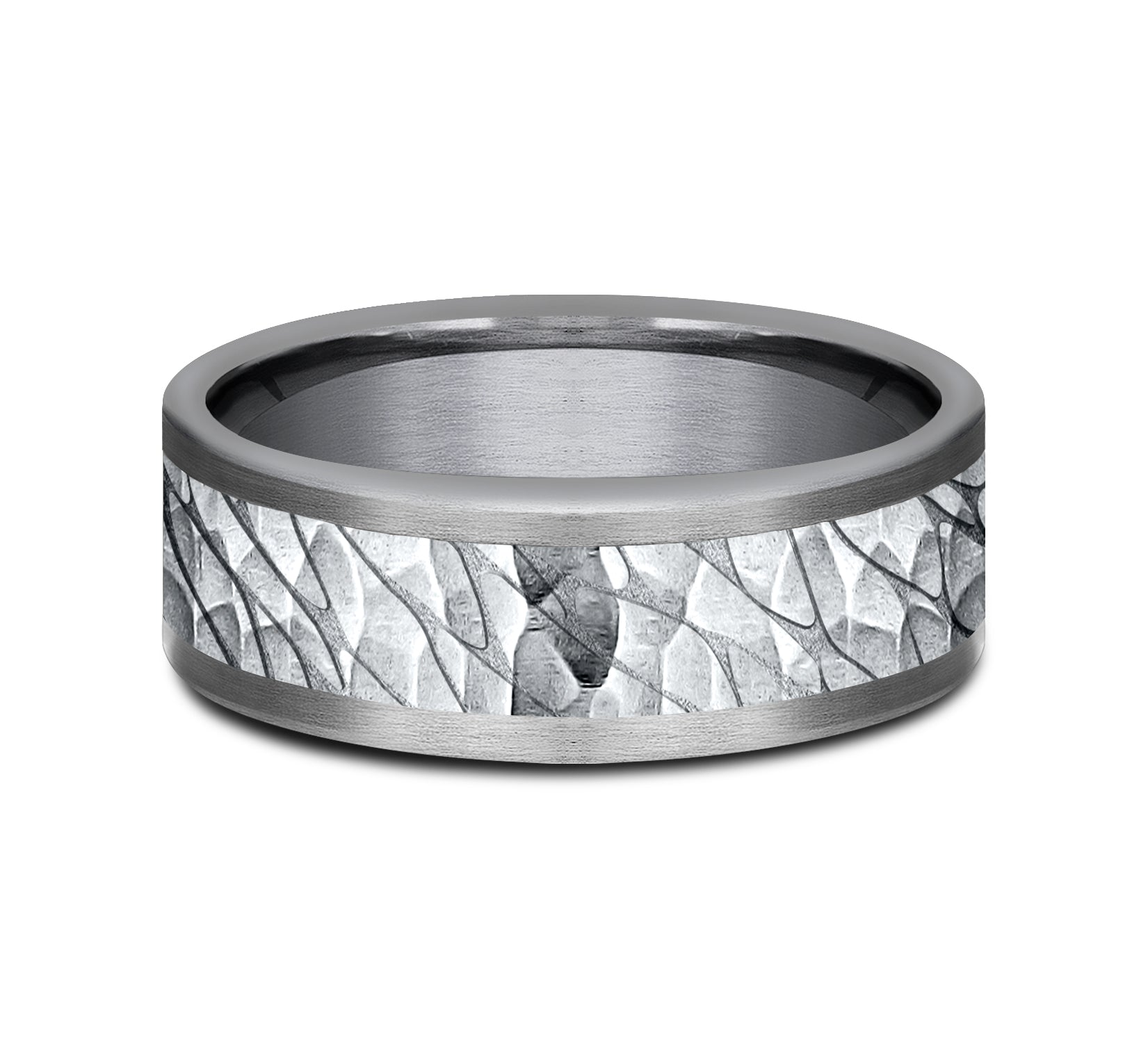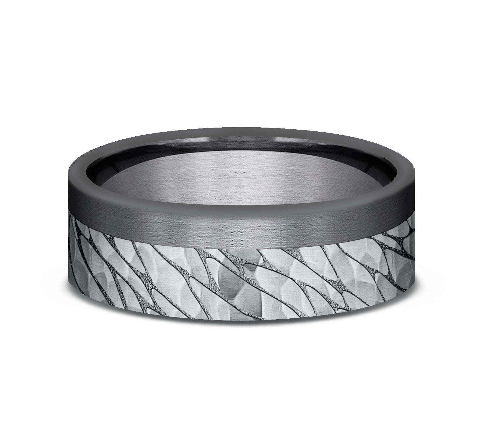6.5mm, Comfort fit 14K Yellow Gold and Black Titanium Pebble pattern with hammered finish