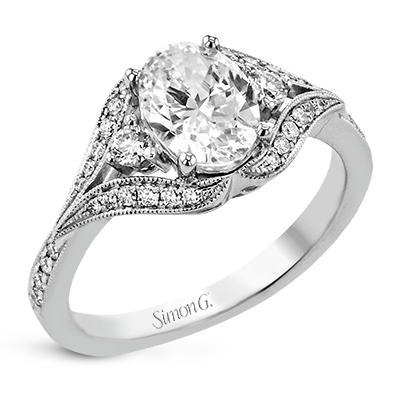 This ring draws inspiration from the past with milgrain details and a vintage-inspired design set with .28 ctw of white diamonds, part of our Roxy Collection. Center stone not included. Our rings can be designed to fit any center stone.