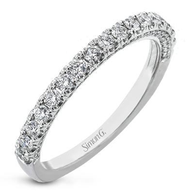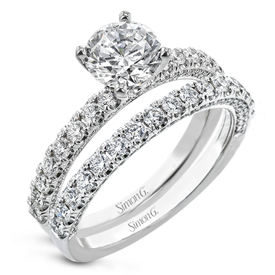 This engagement ring is sure to shine, with a classic straight design set with .49 ctw of white side diamonds. Center stone not included. Our rings can be designed to fit any center stone.