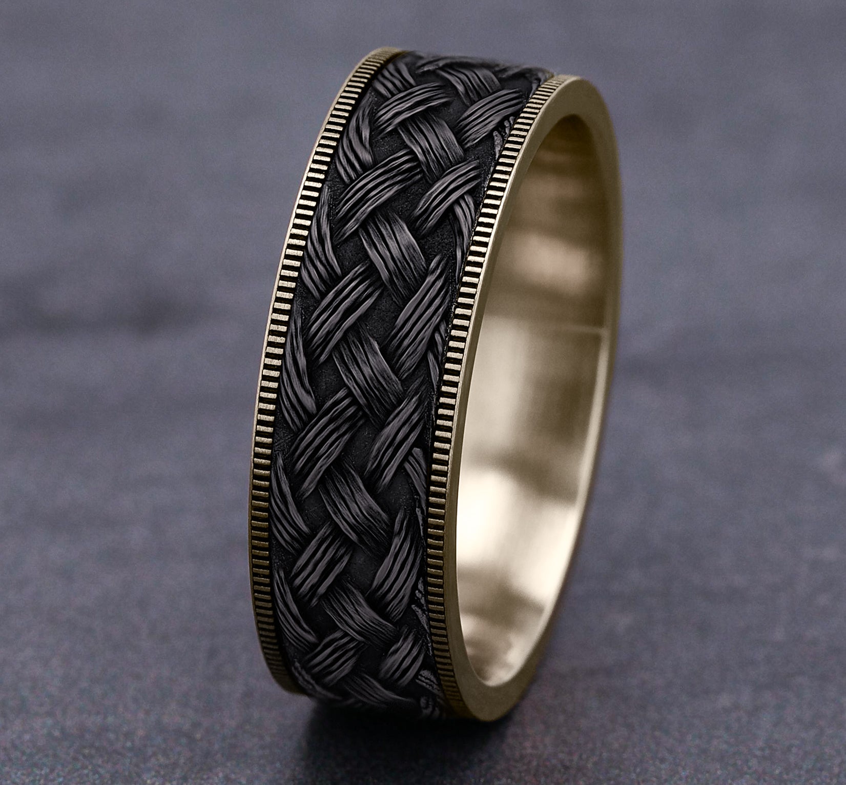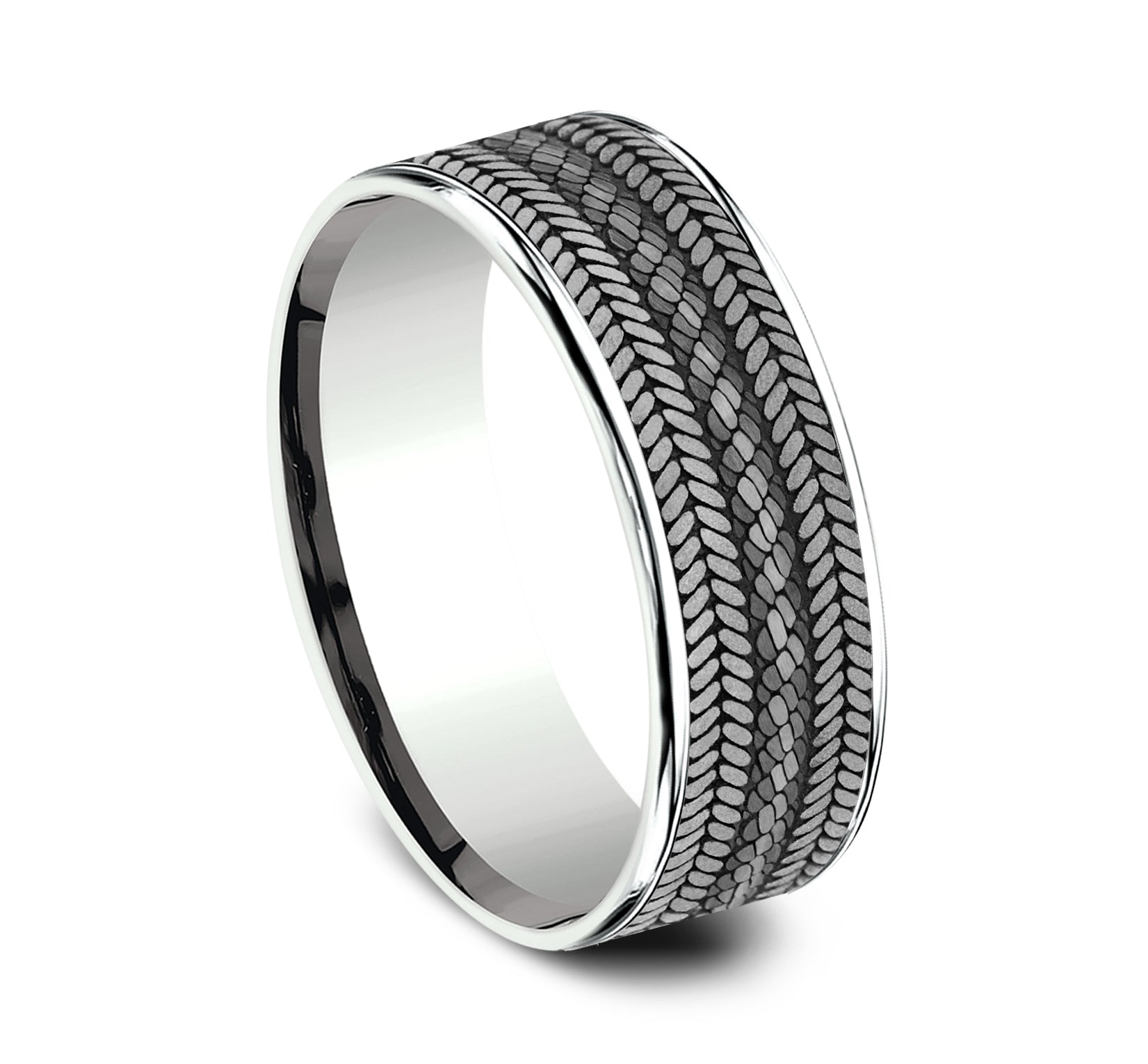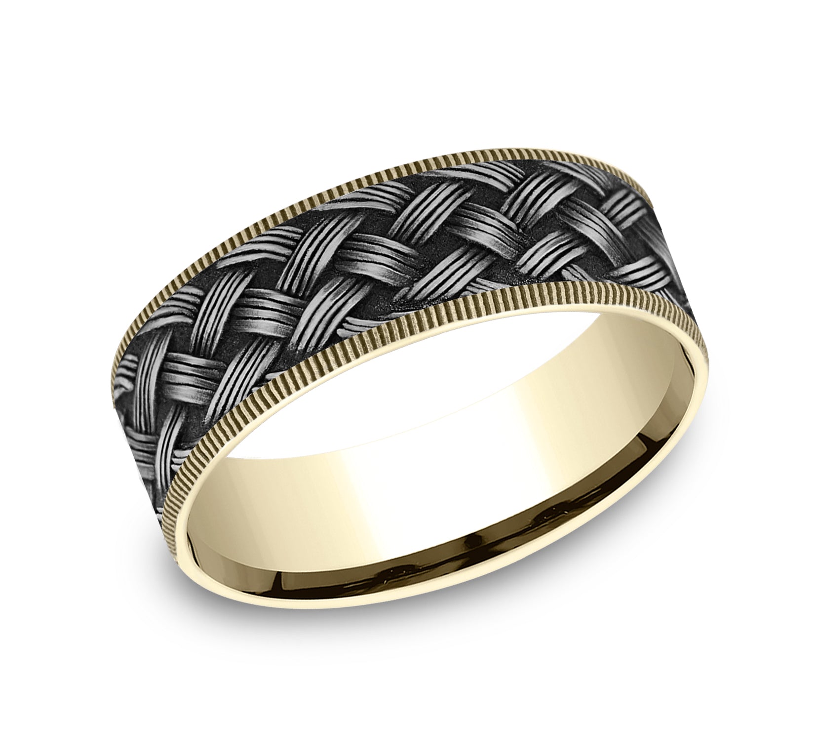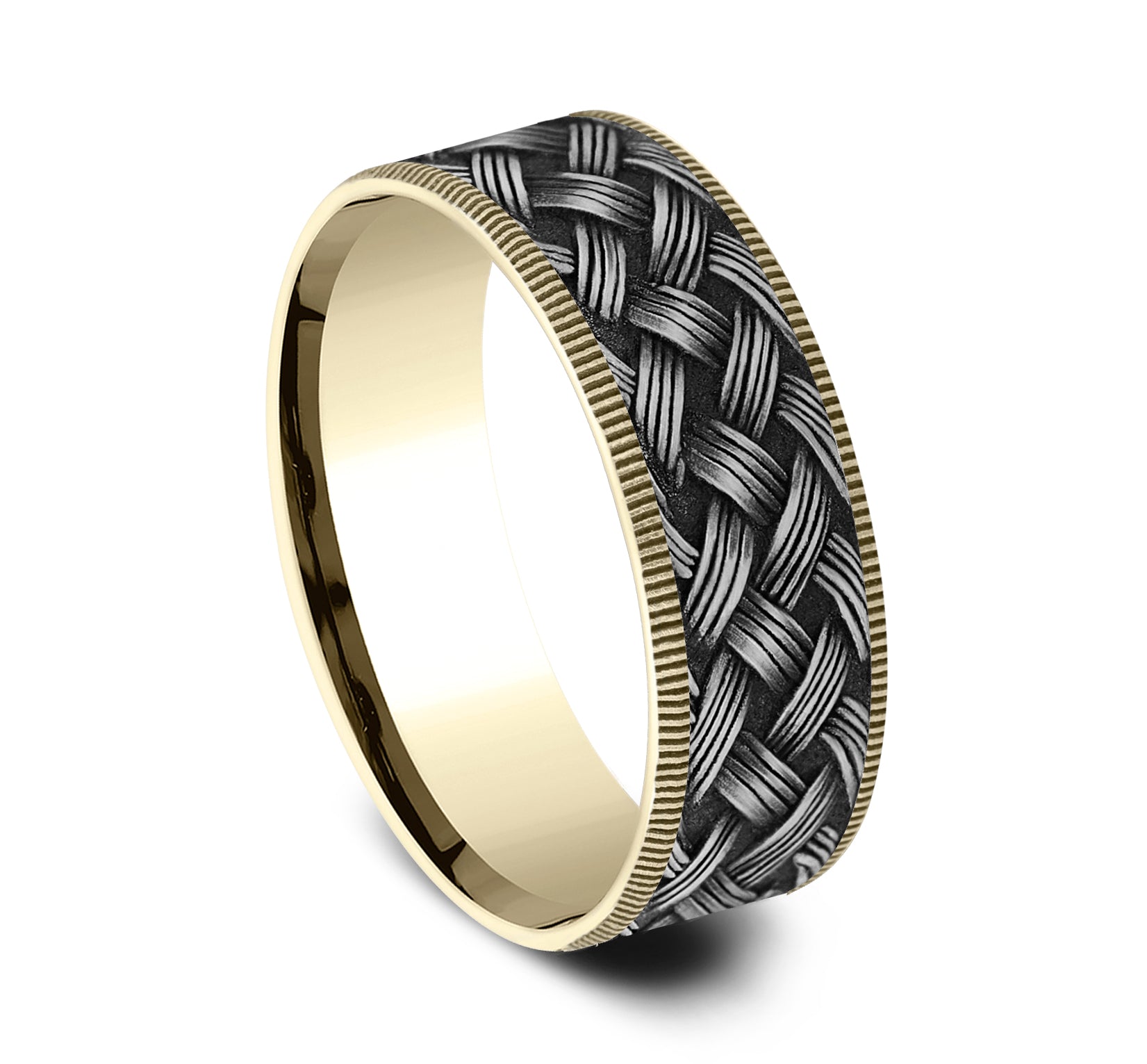 7.5mm, Comfort fit 14K Rose Gold and Grey Tantalum Rope and wheat knot braid pattern, thin edges