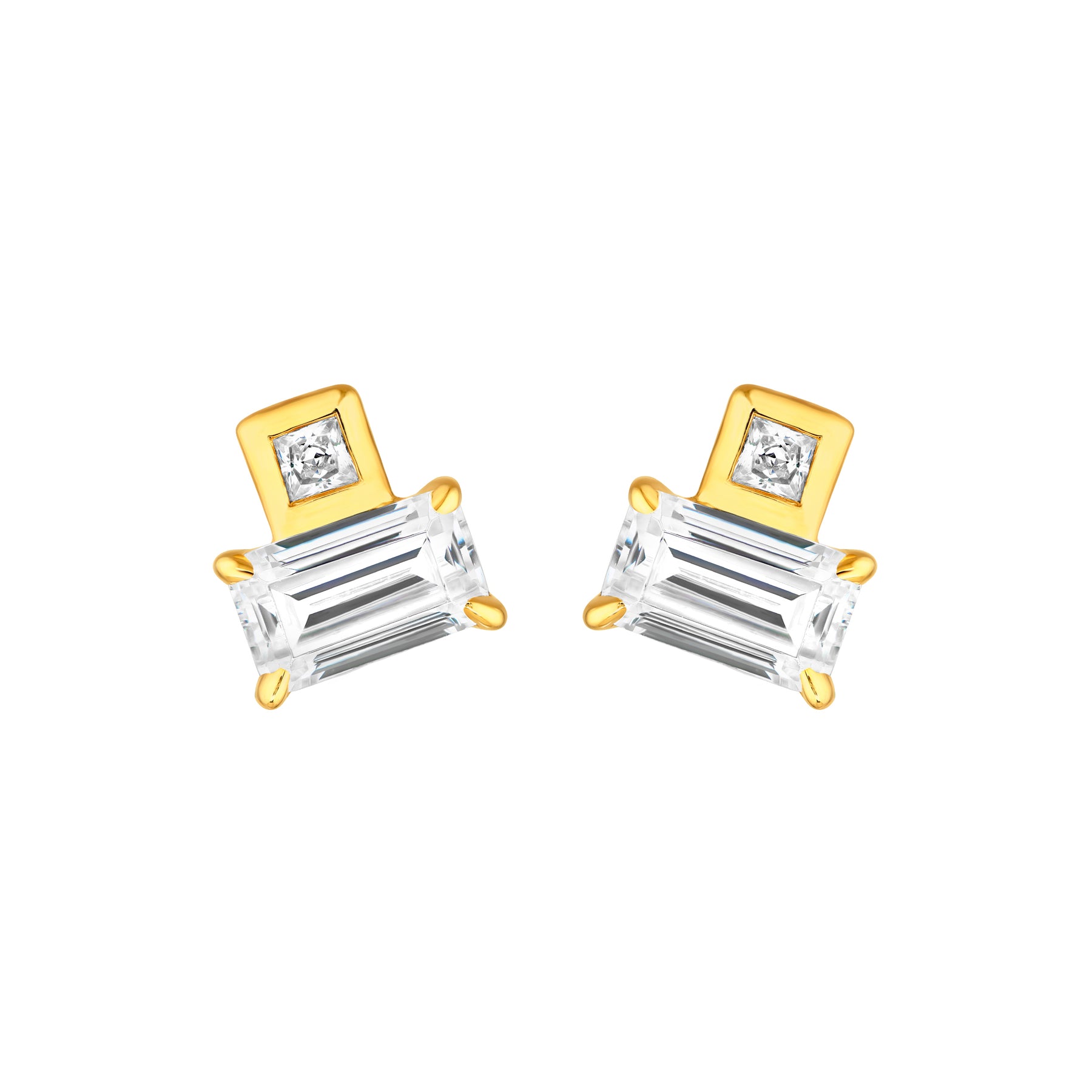 3/4tcw Princess & Emerald Duet Diamond Stud Earrings