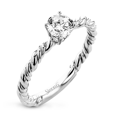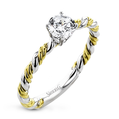 White and yellow 18k gold twine around each other in this ring that puts a twist on a classic design. Center stone not included. Our rings can be designed to fit any center stone.