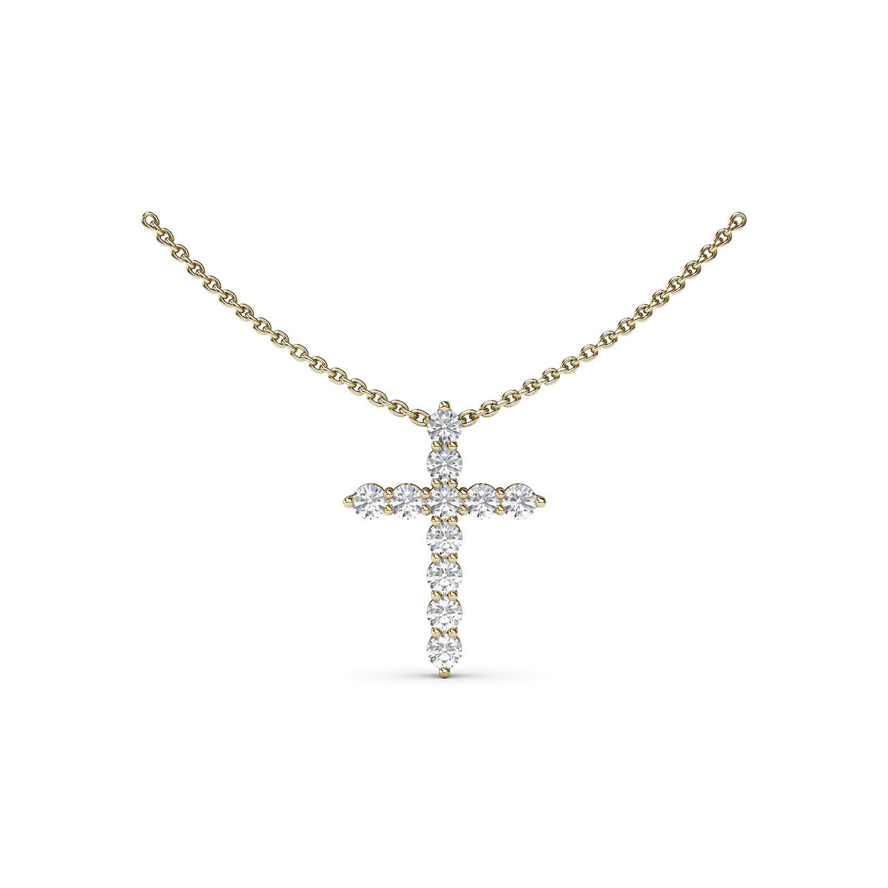 An expression of faith, this diamond prong cross pendant emits a radiant aura of light guaranteed to brighten their day. This pendant come in a variety of material types like 14k white gold, yellow gold, rose gold and can be customized. Classic Fana pendants are perfect for that special woman in your life.
