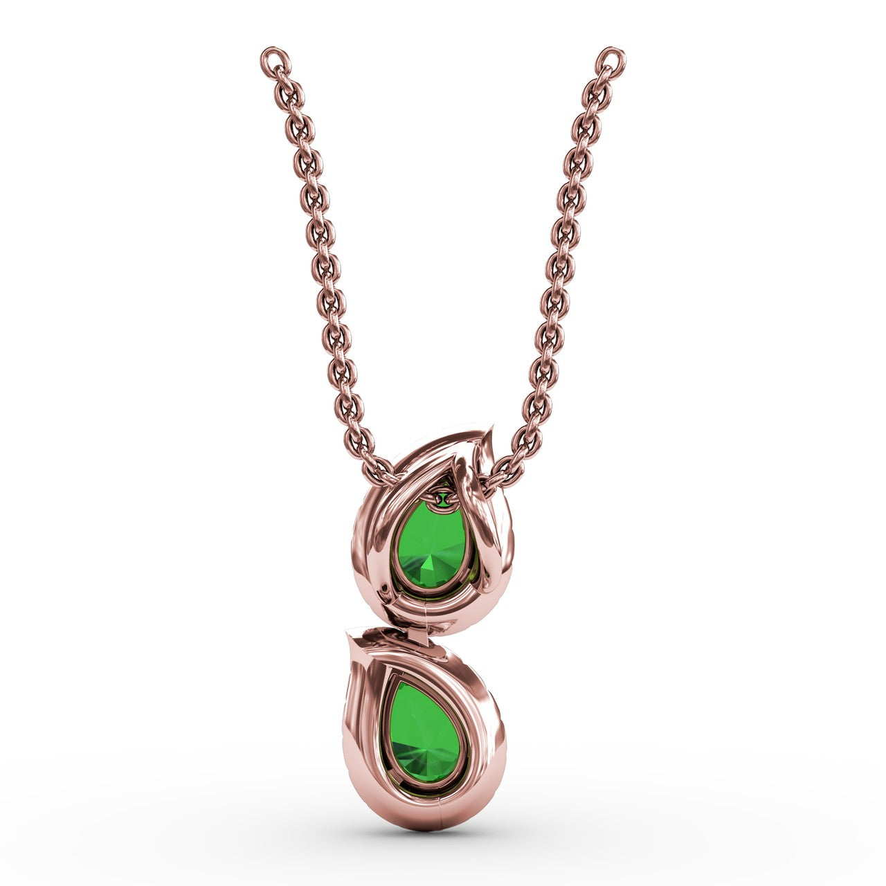 This double the trouble teardrop emerald and diamond pendant comes in a variety of material types like 14k white gold, yellow gold, rose gold and can be customized. Fana gemstone pendants are perfect for that special woman in your life.