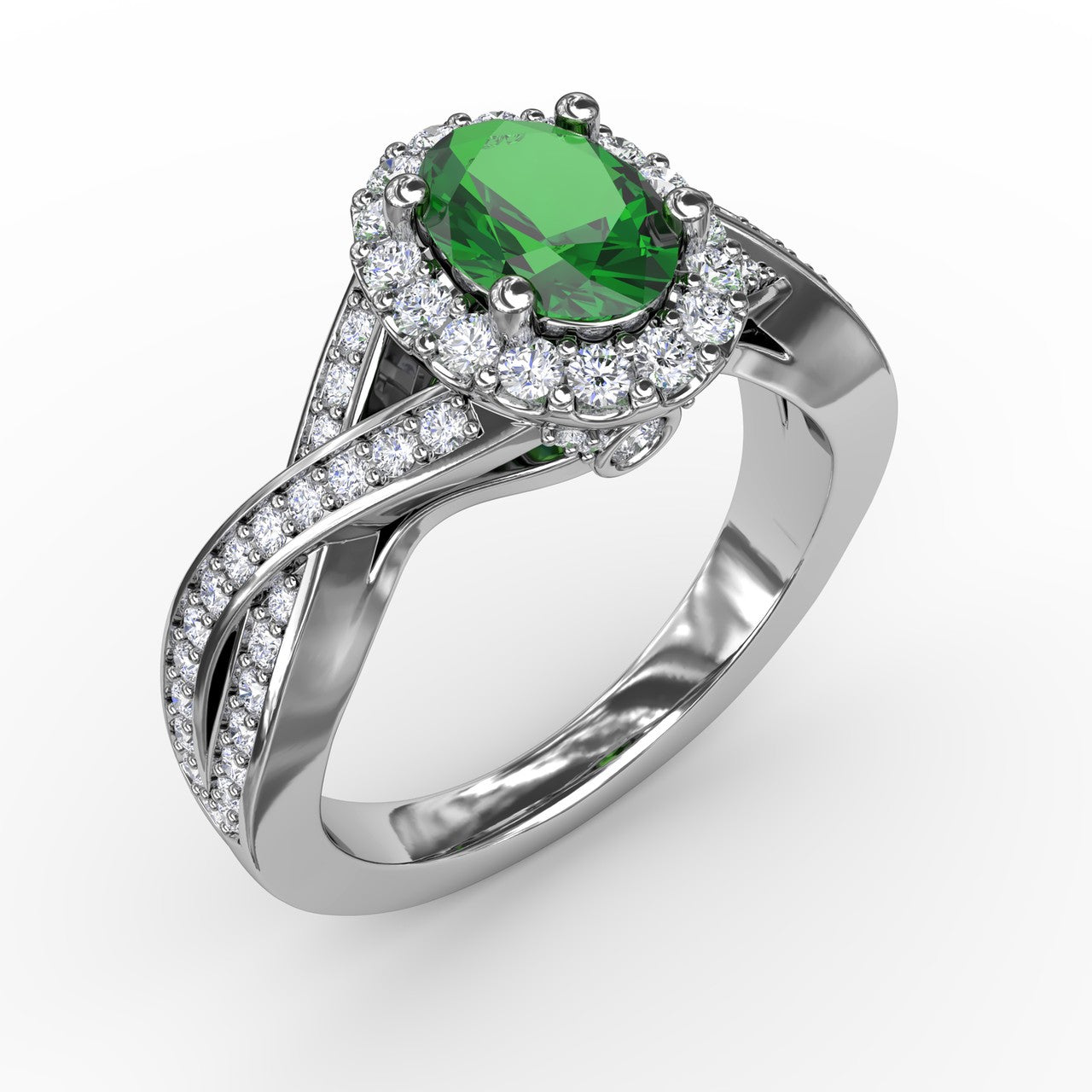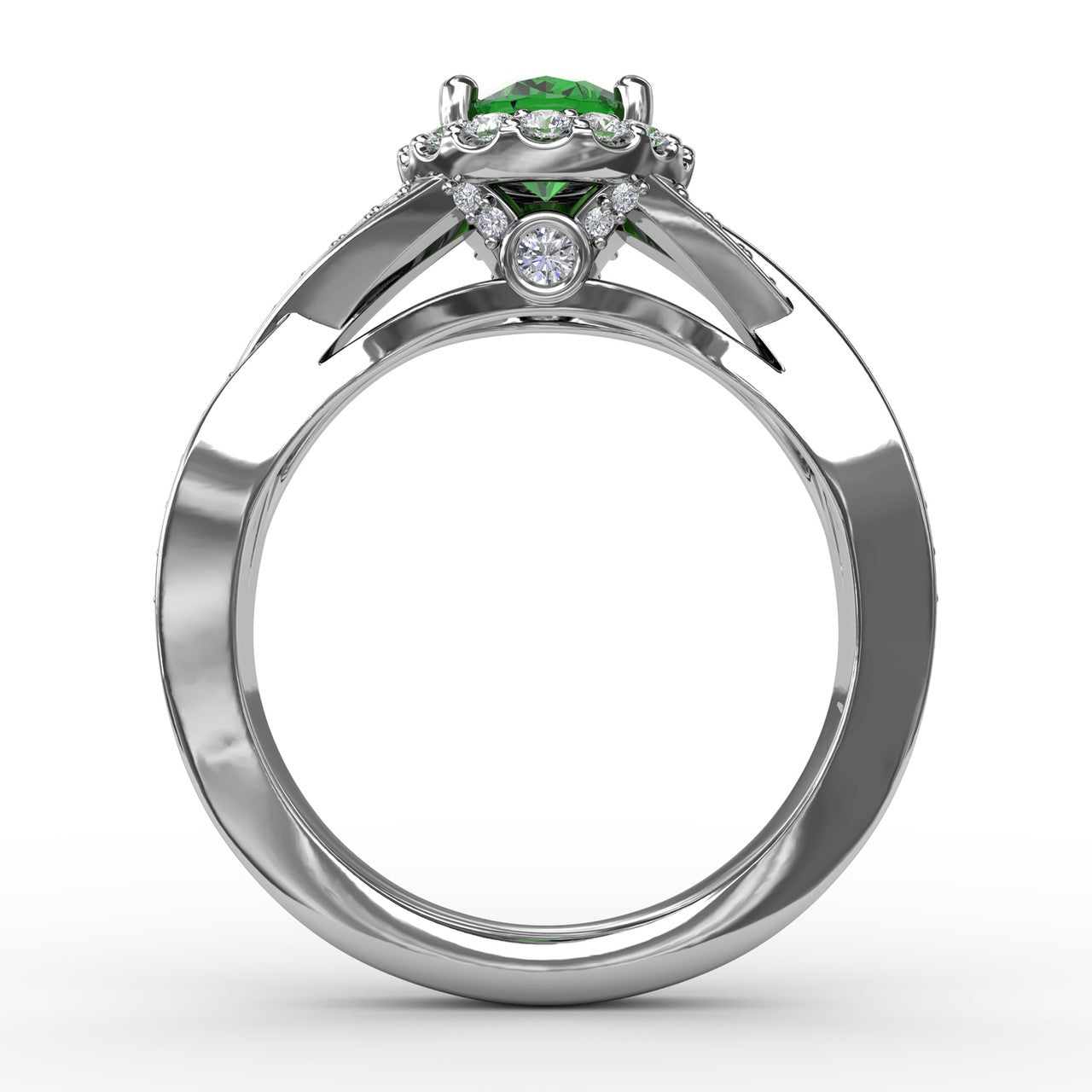 This look of love emerald and diamond criss-cross ring comes in a variety of material types like 14k white gold, yellow gold, rose gold and can be customized. Fana gemstone fashion rings are perfect for that special woman in your life.