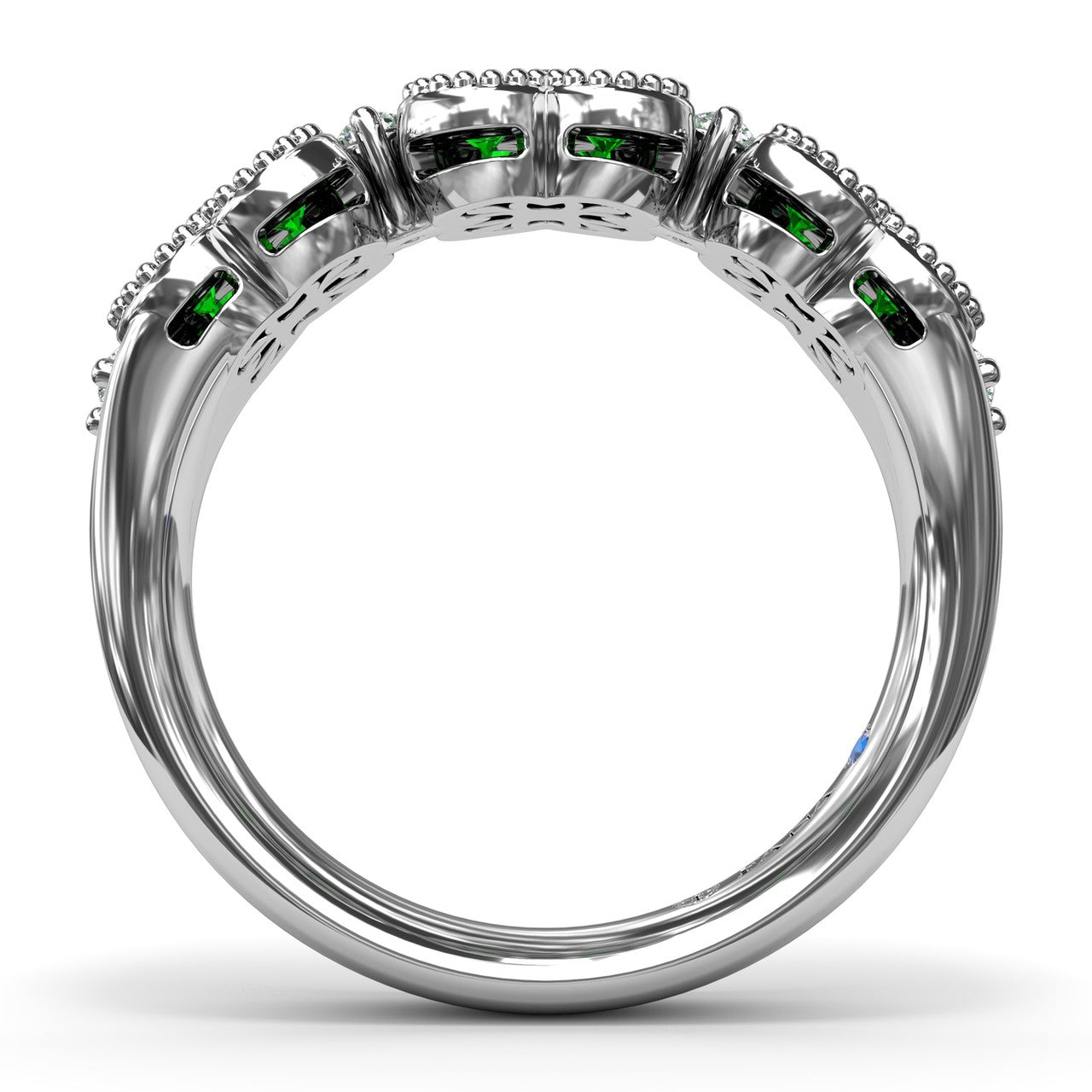 Magnolia Milgrain Emerald and Diamond Ring