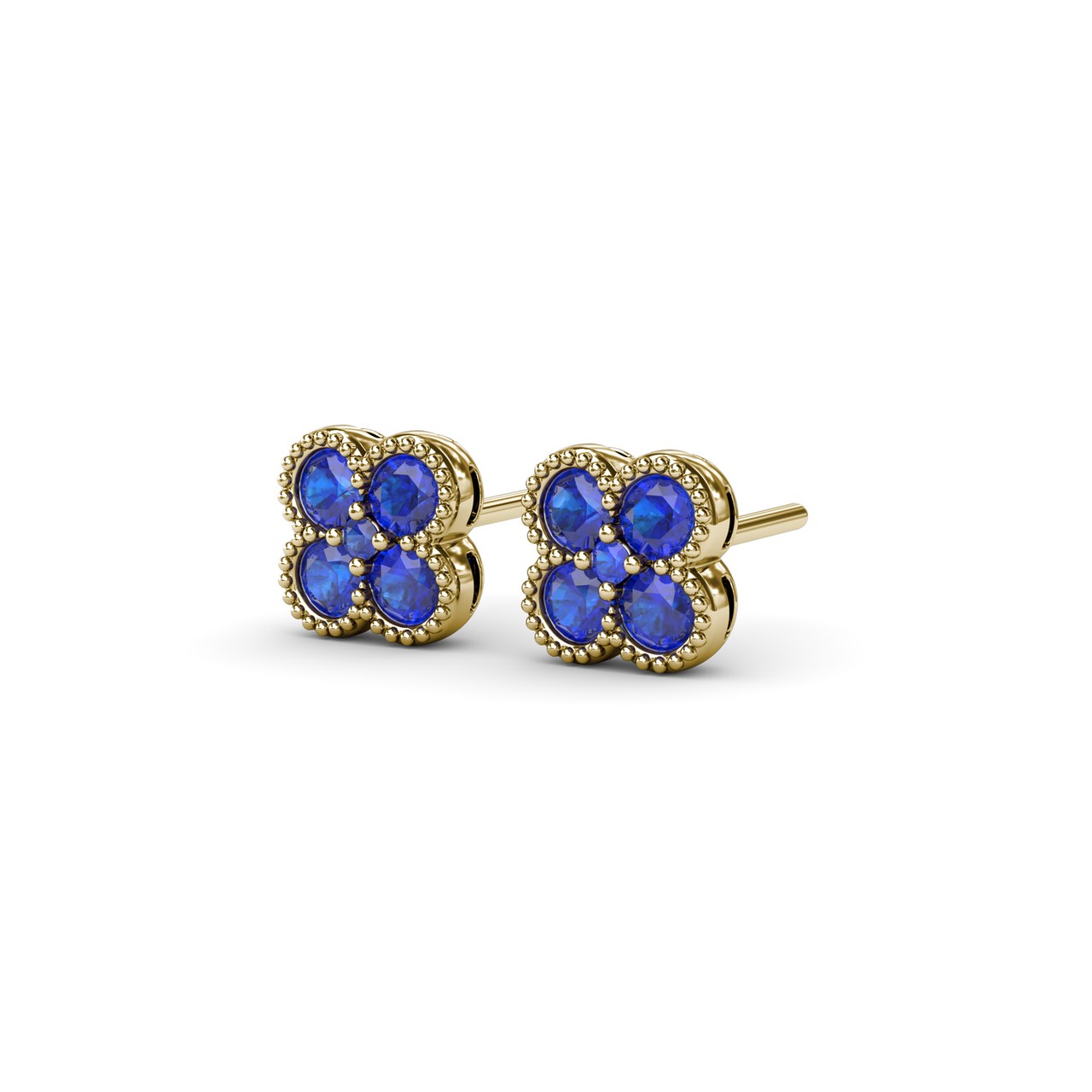 These Magnolia earrings feature round sapphires elegantly arranged in a floral design, delicately accented with milgrain detailing. These earrings come in a variety of material types like 14K & 18K white gold, yellow gold, rose gold and can be customized.