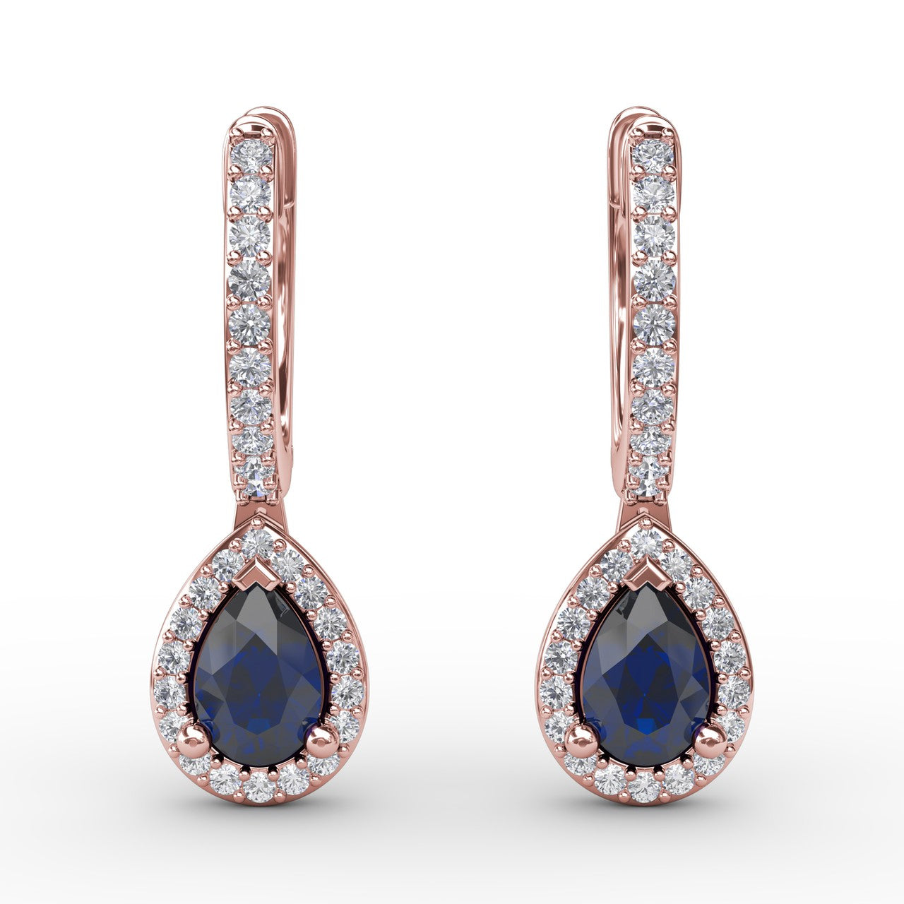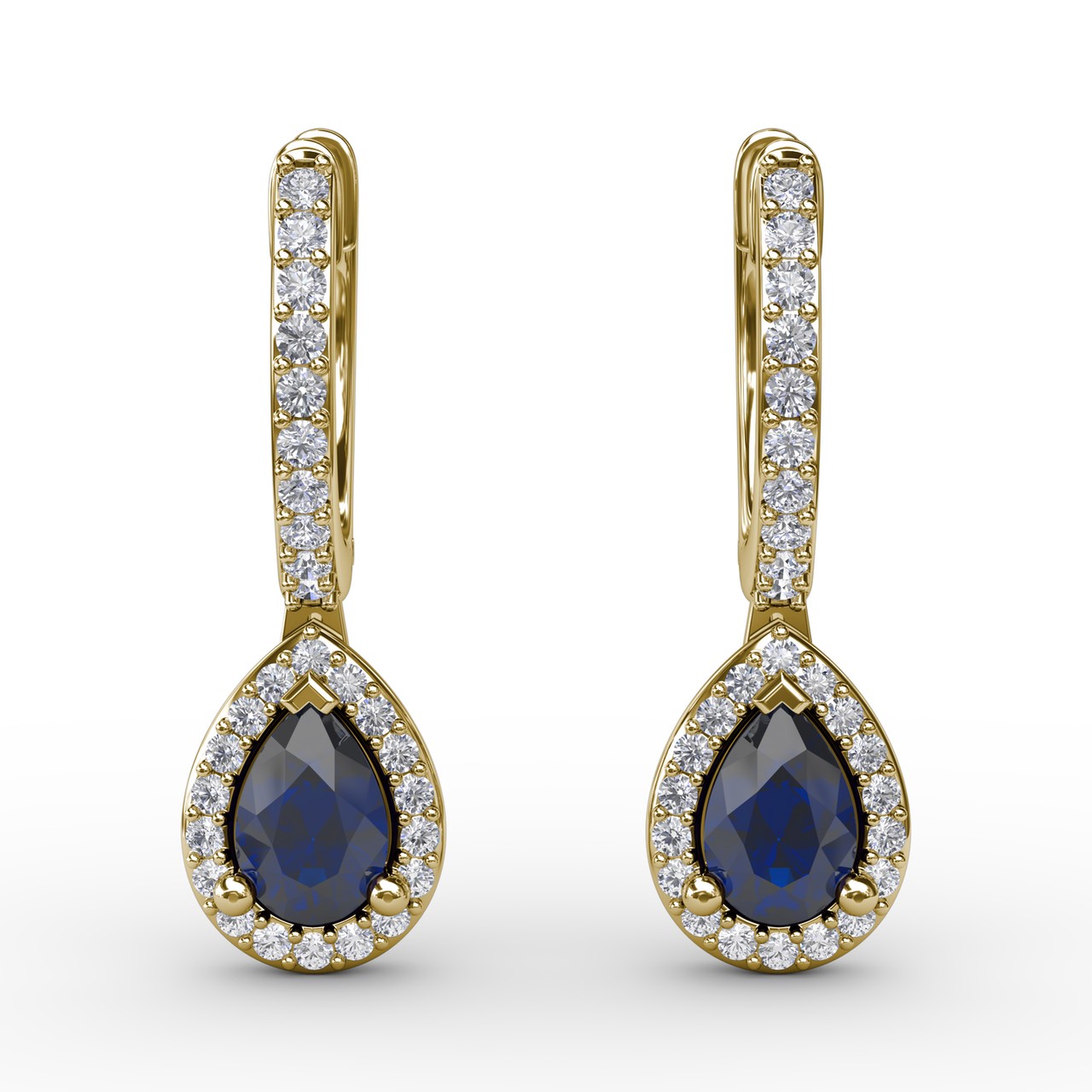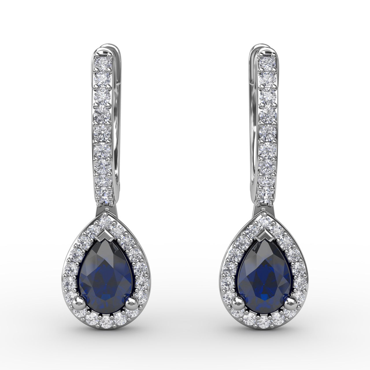 These feminine sapphire and diamond teardrop hoop earrings come in a variety of material types like 14k white gold, yellow gold, rose gold and can be customized. Classic Fana gemstone earrings are perfect for that special woman in your life.