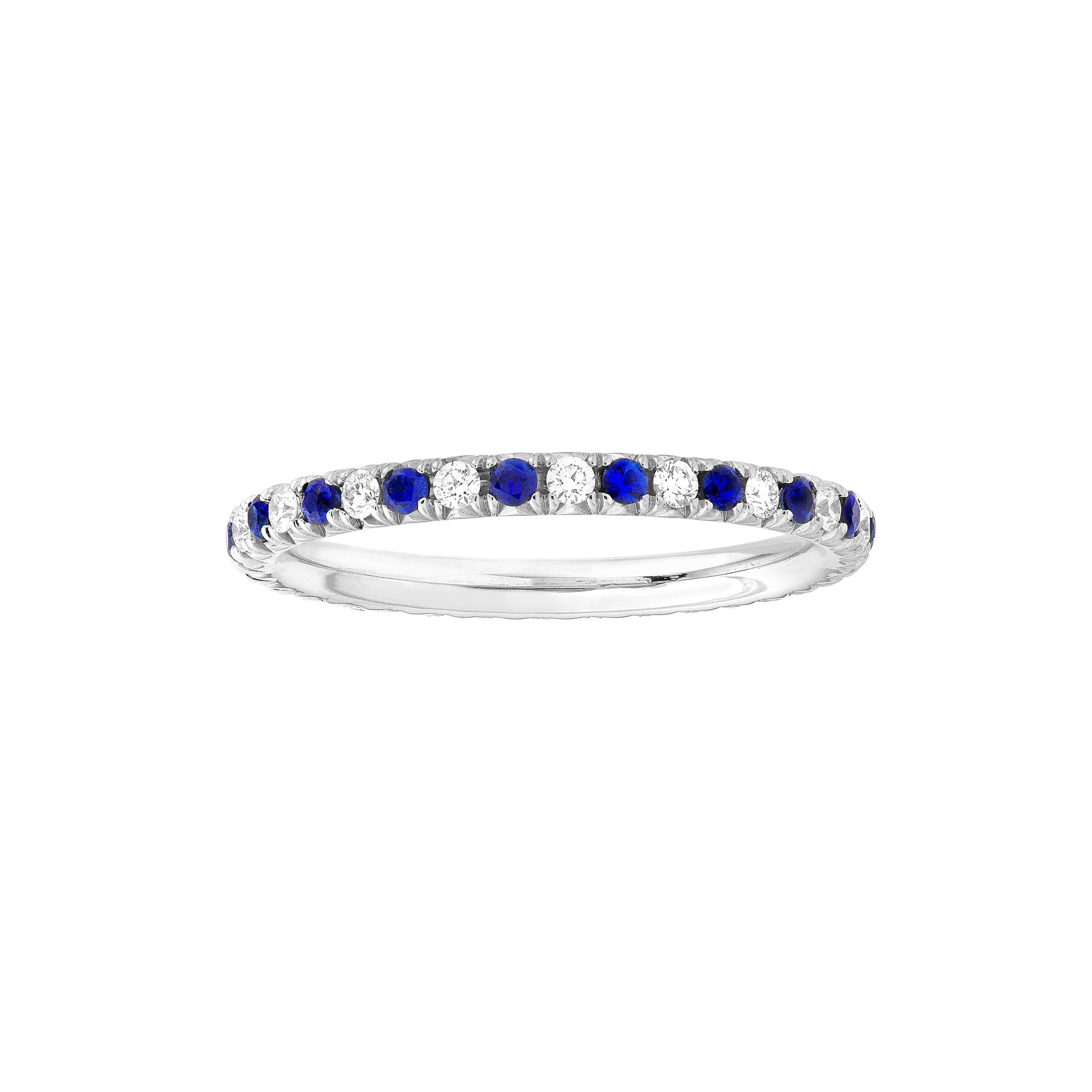 Celebrate life with a sparkling senitment. This 1/4tcw, 1.55mm diamond and sapphire eternity band is a ring you'll love for a lifetime.