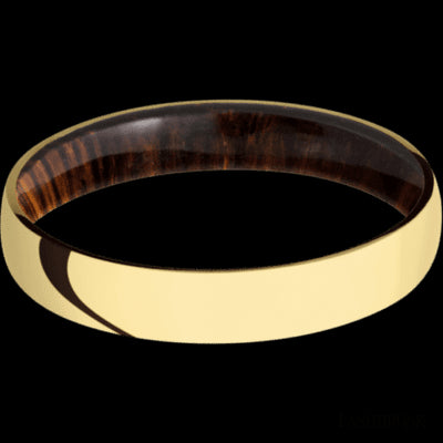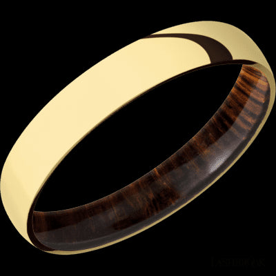 4 mm wide Domed 14K Yellow Gold band featuring a Cocobolo sleeve.