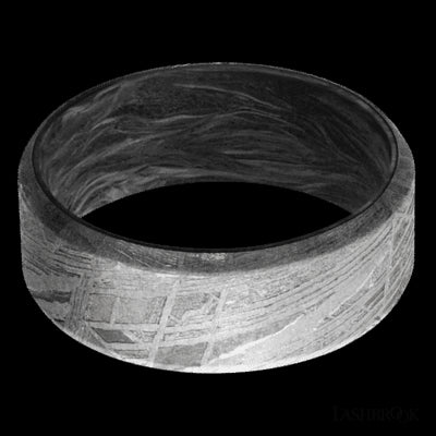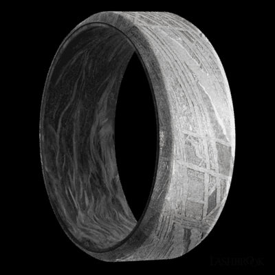 8 mm wide Beveled Meteorite band featuring a Forged Carbon Fiber sleeve.