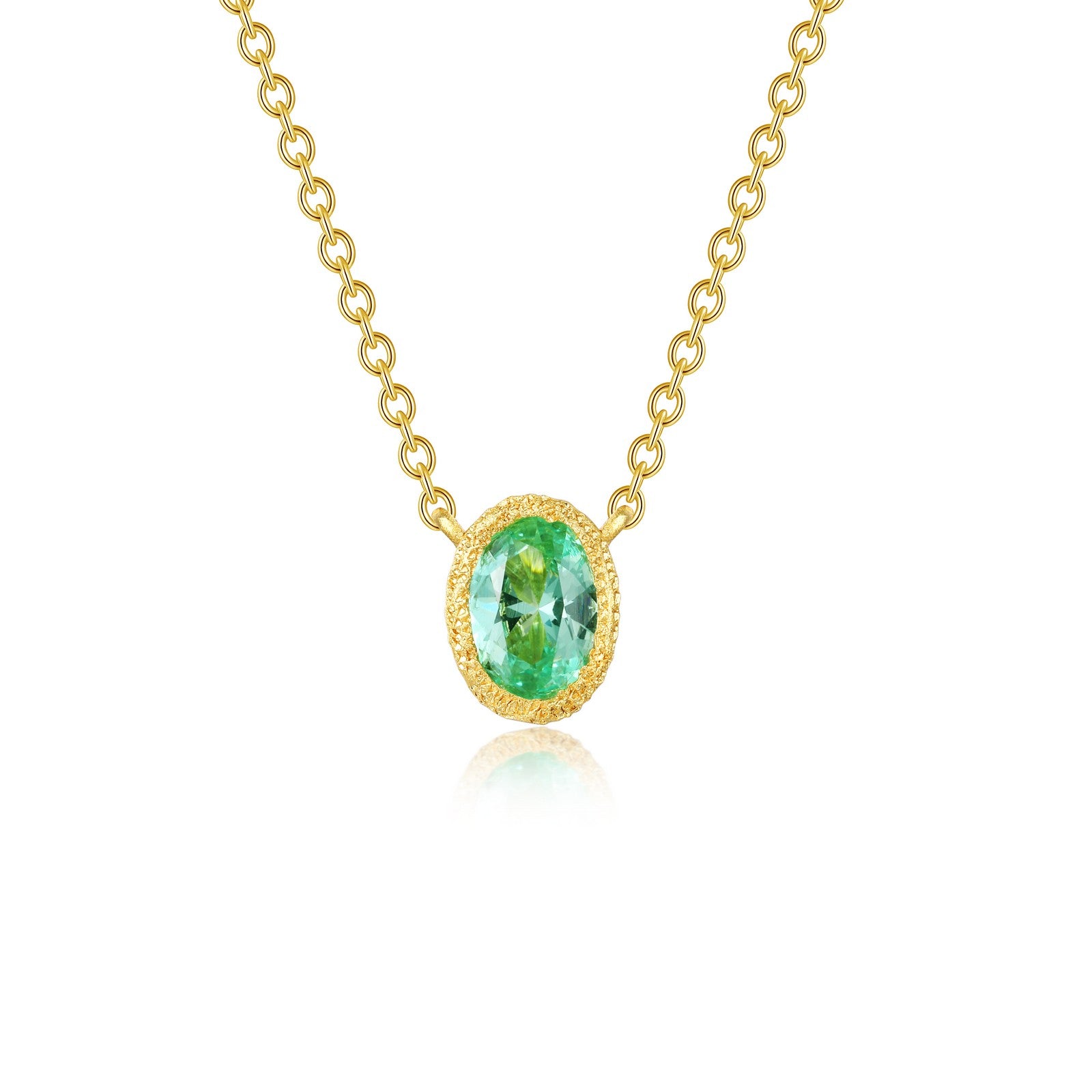 A timeless statement piece. This adjustable halo necklace features an emerald-cut green fancy lab-grown sapphire center stone surrounded by Lafonn's signature Lassaire simulated diamonds. The necklace is set in sterling silver bonded with platinum.