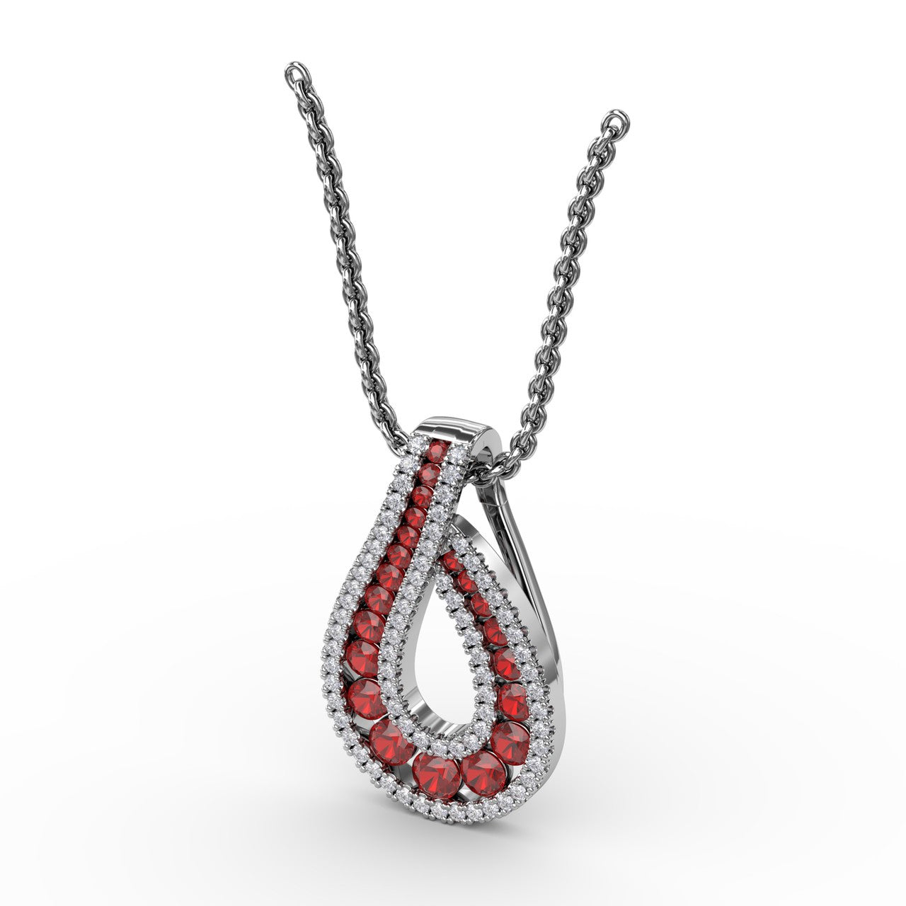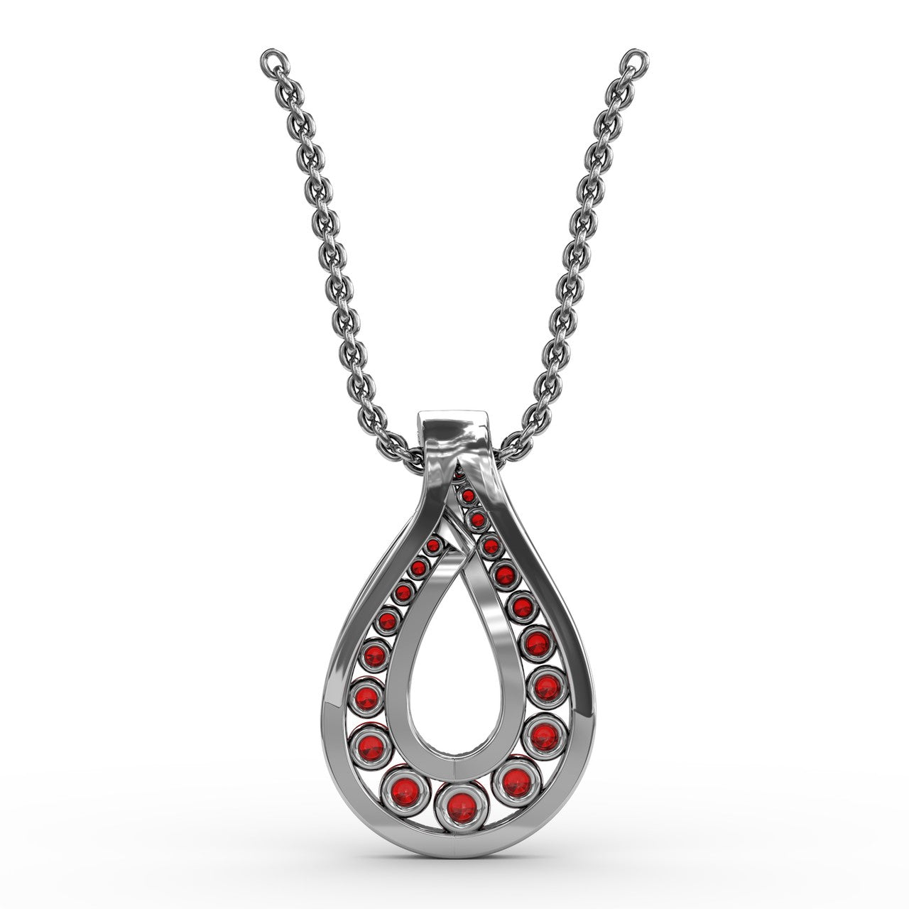This infinity loop ruby pendant comes in a variety of material types like 14k white gold, yellow gold, rose gold and can be customized. Fana gemstone pendants are perfect for that special woman in your life.