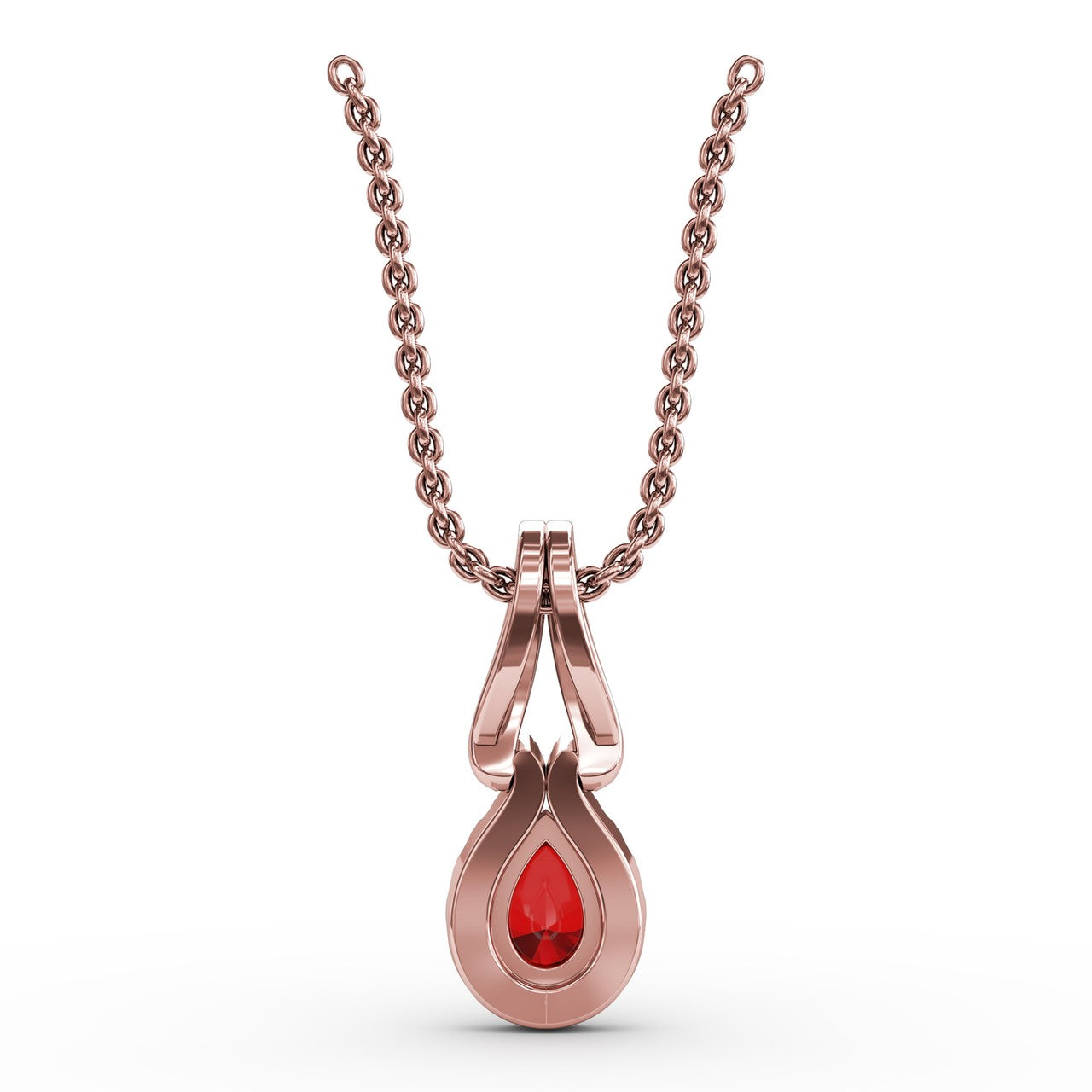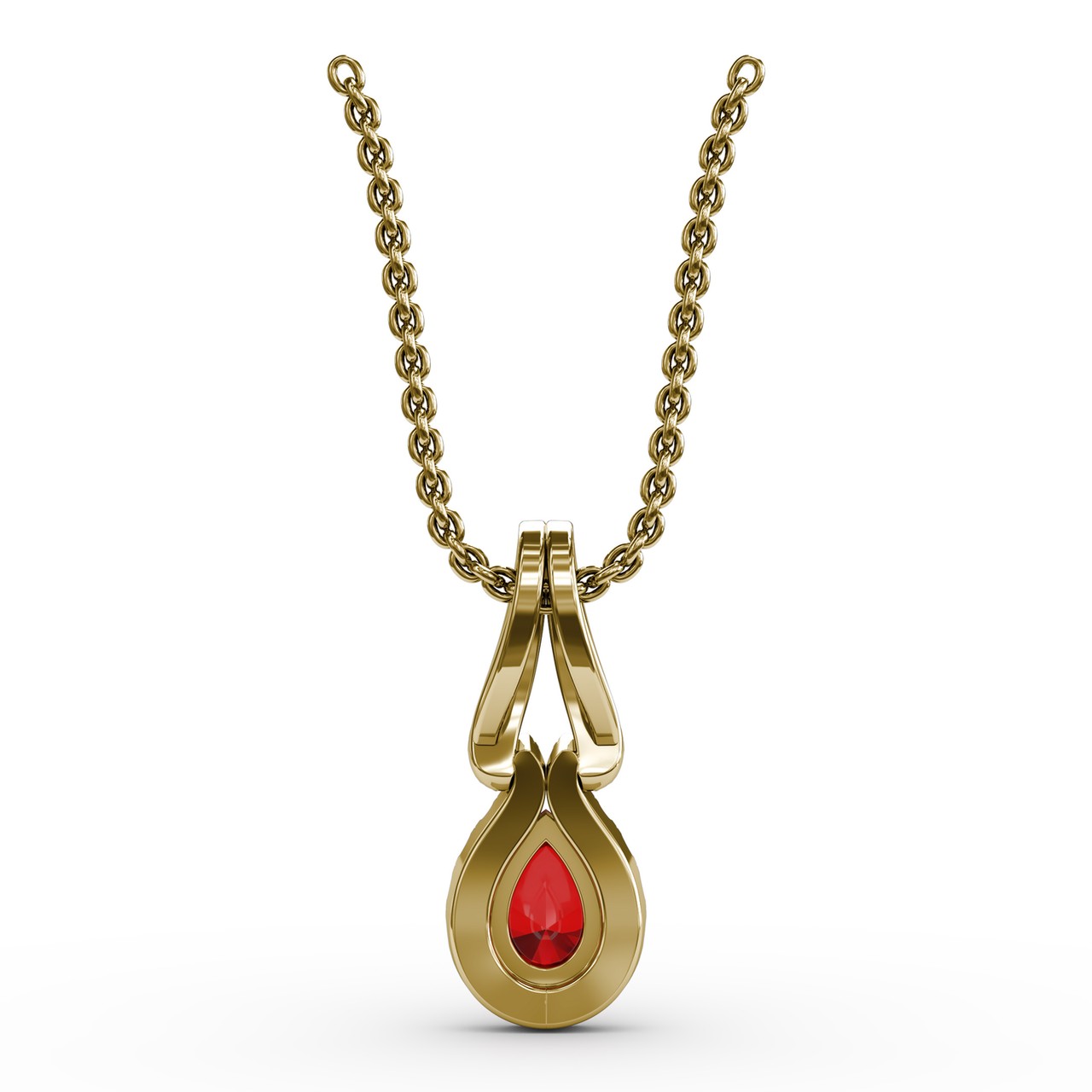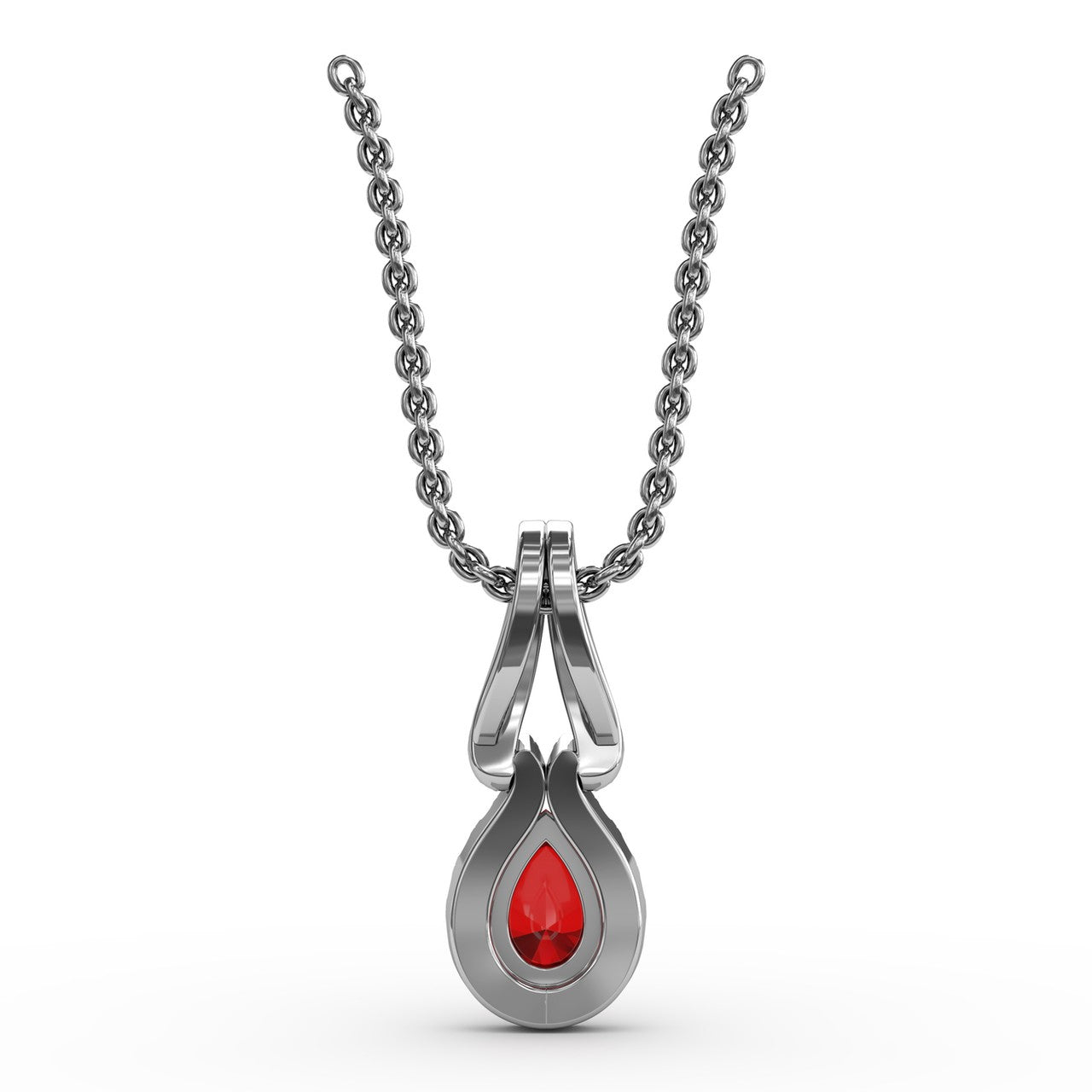 Catch double glances with this classy pear shaped ruby and diamond pendant that come in a variety of material types like 14k white gold, yellow gold, rose gold and can be customized. Fana gemstone pendants are perfect for that special woman in your life.