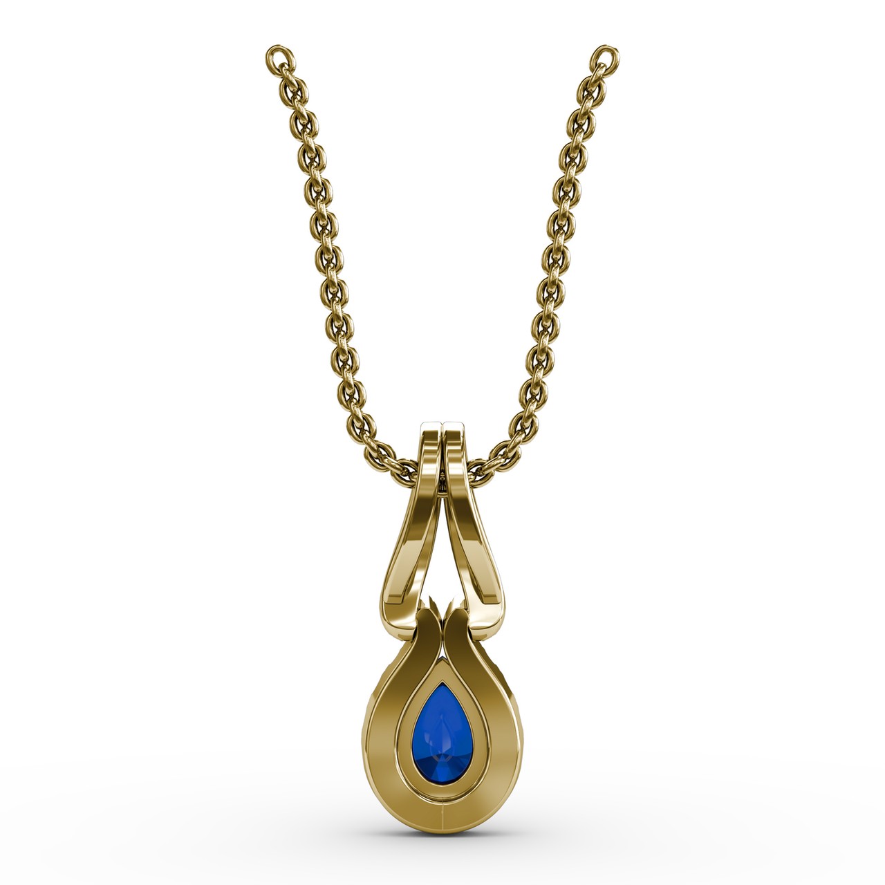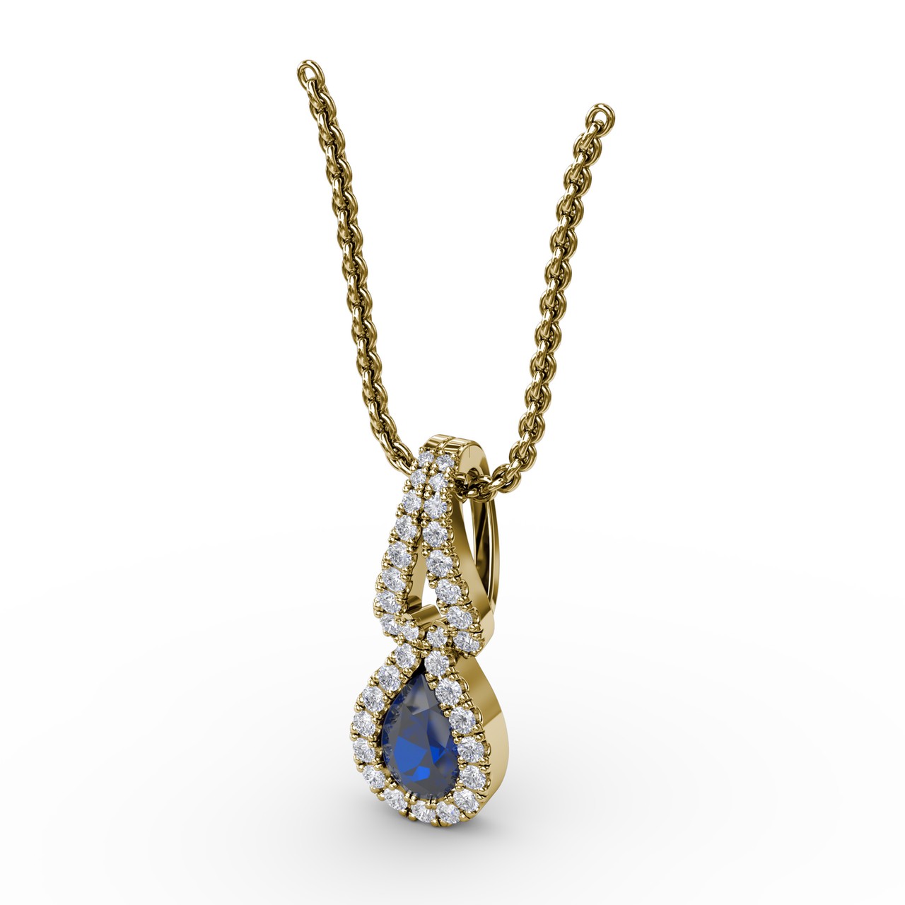 Catch double glances with this classy pear shaped sapphire and diamond pendant that come in a variety of material types like 14k white gold, yellow gold, rose gold and can be customized. Fana gemstone pendants are perfect for that special woman in your life.