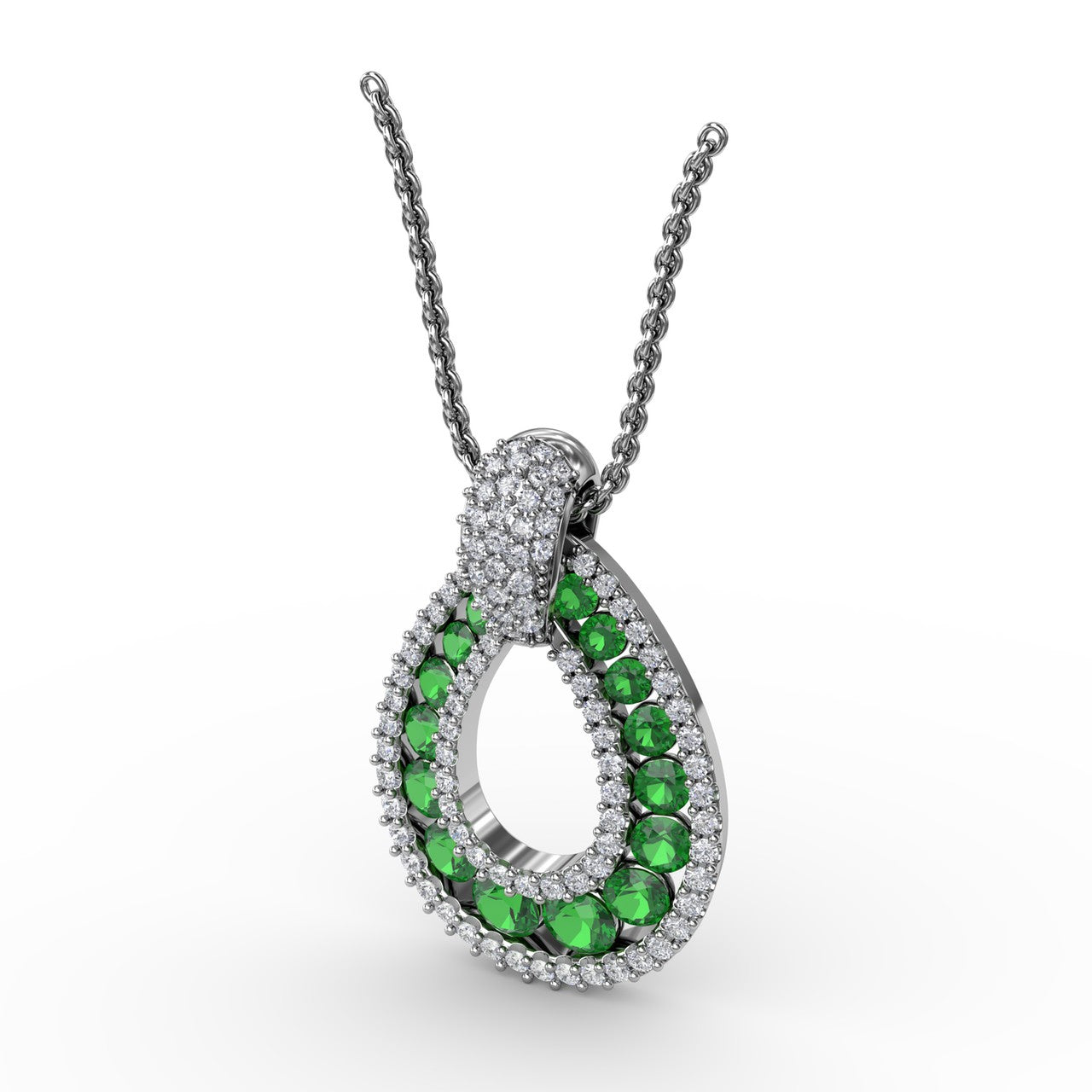This steal the spotlight emerald and diamond pendant comes in a variety of material types like 14k white gold, yellow gold, rose gold and can be customized. Fana gemstone pendants are perfect for that special woman in your life.