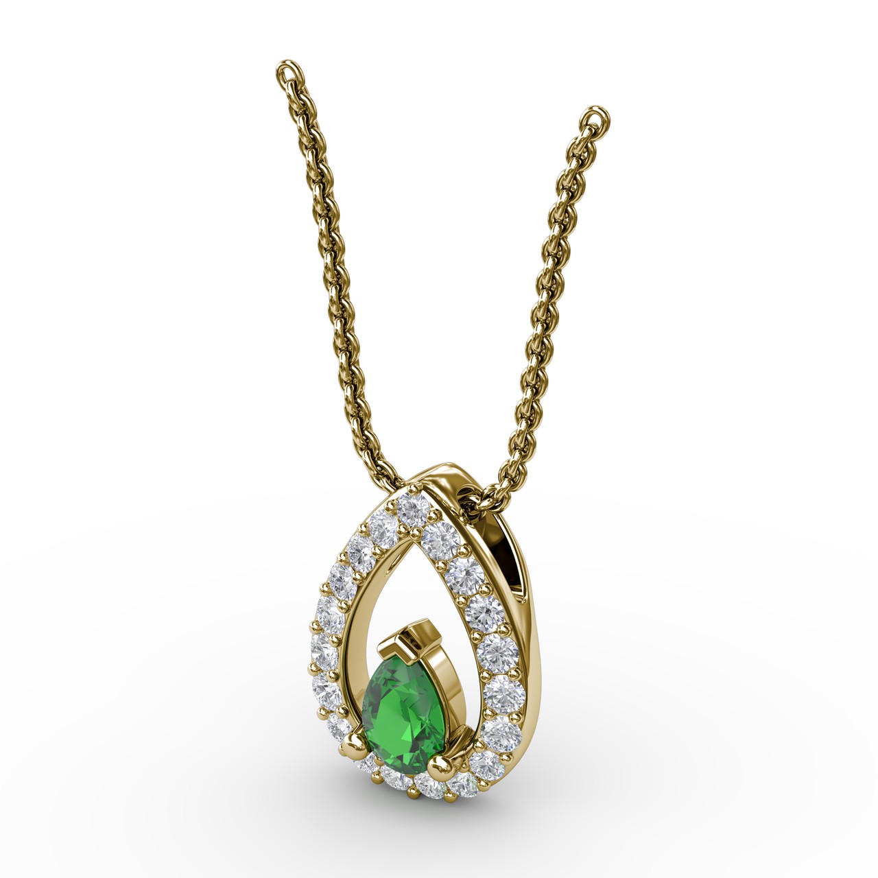 This breathtaking teardrop emerald and diamond pendant comes in a variety of material types like 14k white gold, yellow gold, rose gold and can be customized. Fana gemstone pendants are perfect for that special woman in your life.